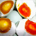 Good quality salted egg , egg white is marked with a bright white with a soft texture salted although high levels can still be tolerated by the tongue . Part yellow ocher textured like sand ( Java = masir ) and remains solid but soft . Being salty taste . The aroma of fresh white part and typical salted egg yolk . It feels very tasty Thus salted eggs produced from good quality raw egg , and salt in the right way . Salted egg so that the current is very rare in the market ,